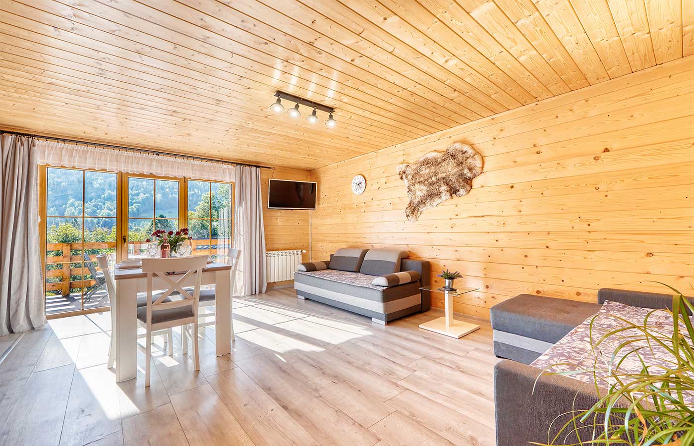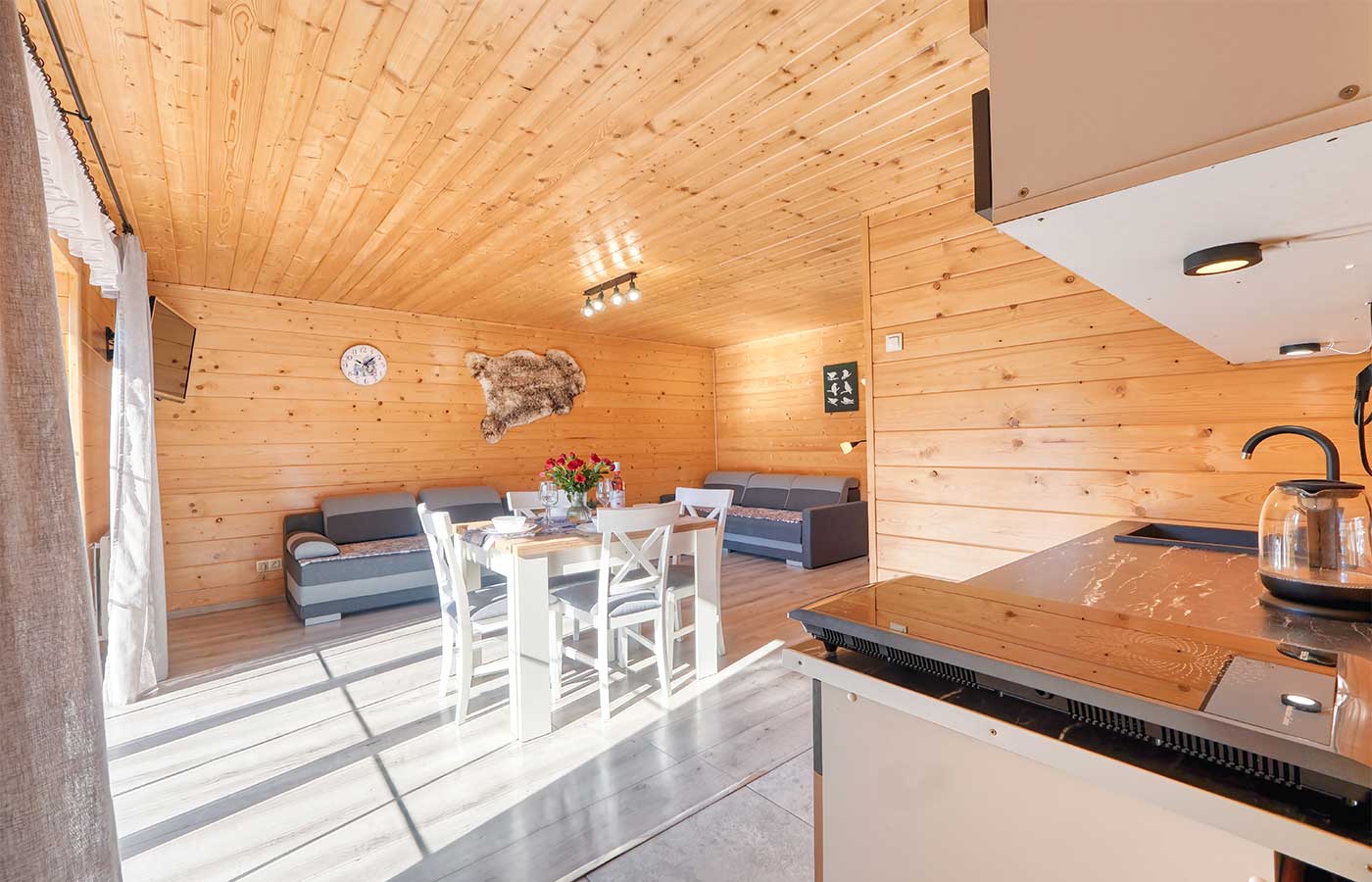 - Udogodnienia: Balkon, Basen dla dzieci, Darmowe Wi-fi, Kuchnia (zastawa stołowa, sztućce, garnki, patelnia, czajnik, zmywarka, ekspres, mikrofala, indukcja, lodówka), Łazienka, Ogrzewanie podłogowe, Parking w cenie, Sauna zewnętrzna, Suszarka do włosów, TV z płaskim ekranem