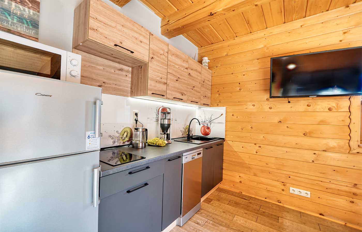- Udogodnienia: Balkon, Basen dla dzieci, Darmowe Wi-fi, Kuchnia (zastawa stołowa, sztućce, garnki, patelnia, czajnik, ekspres, mikrofala, indukcja, lodówka), Ogrzewanie podłogowe, Parking w cenie, Sauna zewnętrzna, Suszarka do włosów, TV z płaskim ekranem, Umywalka z szafką